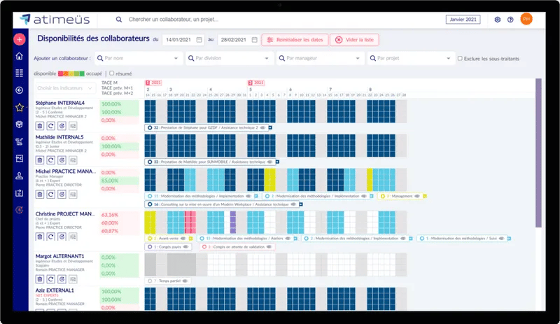 On accompagne ses équipes au quotidien : saisie notes de frais, feedback mensuel avec 4 thématiques notées de 1 à 4.Le staffing prévisionnel permet d'optimiser son plan de charge, et connaître les disponibilités des consultants.